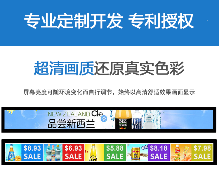 產品概述:智能貨架條形屏是條型液晶屏在新傳媒和新零售領域的一個新應用。